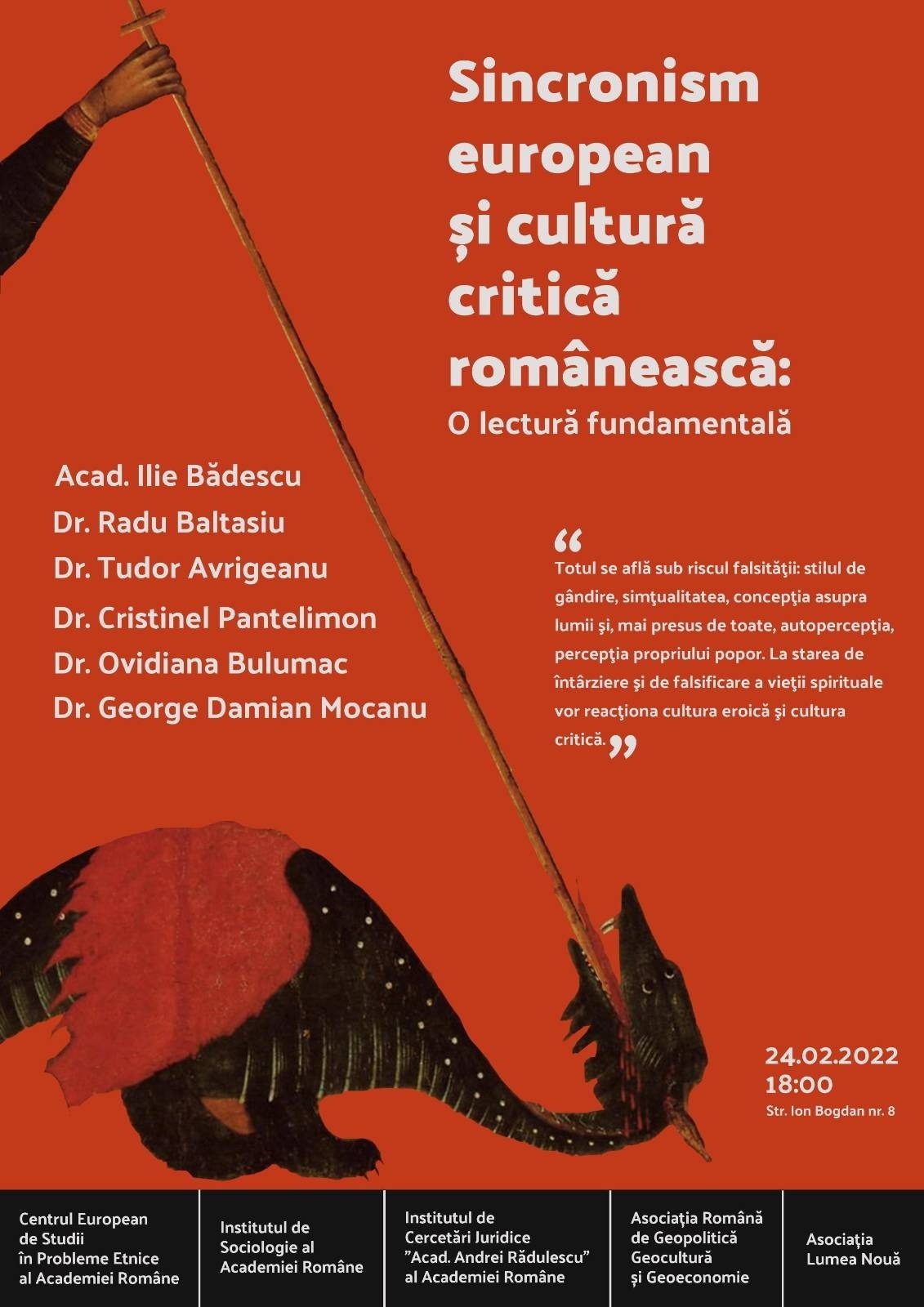 The European Center for Studies in Ethnic Issues, in partnership with the Institute of Sociology of the Romanian Academy, the “Acad. Andrei Rădulescu” Institute for Legal Research of the Romanian Academy, the Romanian Association for Geopolitics, Geoeconomics and Geoculture, and the “Lumea Nouă” Association, organized the national conference “European Synchronism and Romanian Critical Culture,” in [...]